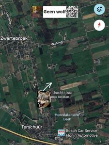 Om kwart over 3 stak een wolf over de eendrachtstraat over richting de blankenhoefseweg t.h.v de Beek in Terschuur.