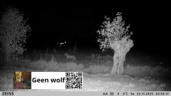 3 wolven gezien met de warmtebeeld kijker, op de Valkseweg. Ook een beeld van wildcamera om 3.59 uur.