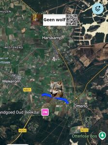 Gisteren wolf gezien op de Barneveldseweg, hij wilde oversteken maar ging toch terug.