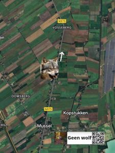 Wolf gezien langs de Musselweg N975. Ging richting Vosseberg.