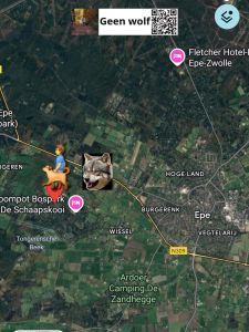 Man met hond werd gevolgd door wolf op de koeweg thv Remboe Village