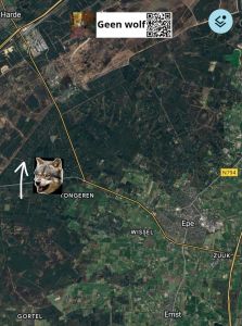 Wolf gezien om 08.10 uur, stak 10 meter voor mijn auto de weg over op de N795 net iets voor Buitenplaats ’t Soerel.