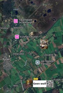 Wolf gezien vlakbij Dwingelderveld, in weiland aan de Achter de Broeken.