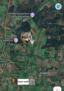 Wolf gezien thv Zwiggelteweg/Halerweg.Kwam vanaf fietspad kamp Westerbork.