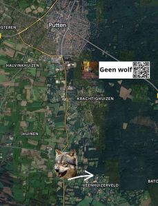 Wolf gezien, Schoon- hoverweg. Liep langs twee weilanden waar meerdere pony’s en paarden staan en langs een vakantiepark. Liep vanaf de Voort- huizerstraat richting Veenhuizerweg.