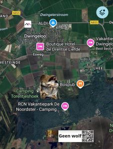 Dode wolf, lag tussen camping Noordster en Bosrand. Oorzaak wordt onderzocht.