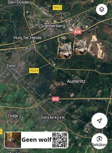 2 wolven gezien op de Grensweg, ze zijn verder het losloopgebied in gelopen.