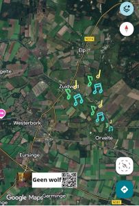 Flinke roedel wolven gehuil gehoord in Orvelte, kwam vanuit Noordwesten waarschijnlijk de roedel uit Wijster of Elp.