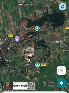 In Waterbolkpark midden in het bosje bij de grote vijver. Wolf was niet bang want naderde mij op ca 10 meter. Ging richting Nieuwe Ruiterweg. Melder is enorm geschrokken.