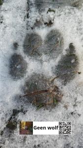 Wolf gezien, stak de Ter Apelerstraat over. Ook sporen van de wolf gezien.