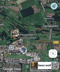 Wolf gezien op de Pesserdijk ,ter hoogte van nr. 17.Richting onbekend.