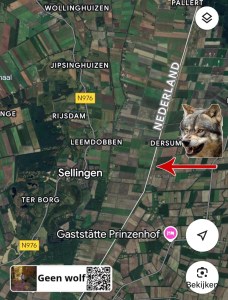 Wolf gezien net over de grens van Sellingen. Tussen de Colloepsweg weg en Vossenbrinkweg.