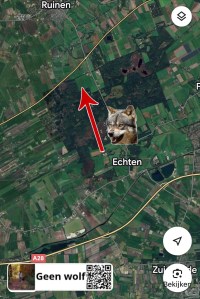 Wolf gezien op kruising Ruinerweg/Pesserweg. Liep richting Ruinen.