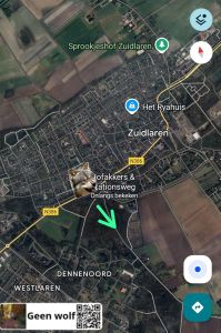 Wolf gefilmd op de hoek hofakkers- Stationsweg in Zuidlaren