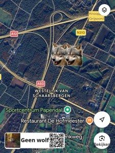 Woensdagochtend een week geleden heb ik 2 wolven gezien op het fietspad Koningsweg/Wekeromseweg. Ze liepen vervolgens voor en achter mijn auto langs.