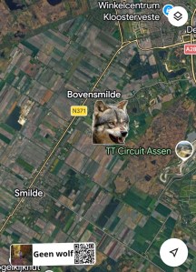 Wolf gesignaleerd om 11.00 tussen de Witterweg en Duikersloot in Bovensmilde.