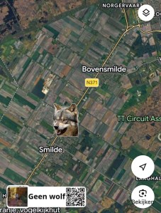 Wolf gezien tussen de Hoofdweg en de Molenwijk in Smilde.