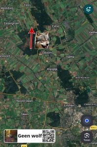 Wolf gezien op de borgerderweg, liep richting het noorden.