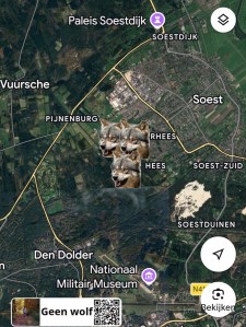 Melder zag een roedel van meer dan 3 wolven op de Wieksloterweg Oostzijde tussen Voetbalvereniging Hees en de Wittelaan.