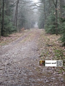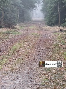 Wolf gezien in losloopgebied bij Kibbelveen langs de Slenerweg. Hij liep vanaf de parkeerplaats het bos in.