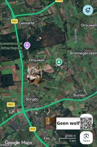 Gisteren een wolf gezien in weiland nabij de Achterste Kampweg.