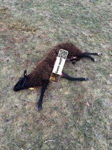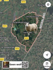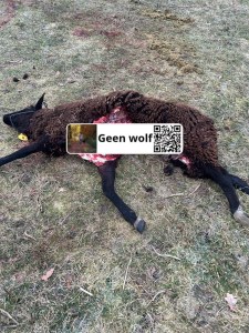 “Helaas vannacht een wolf bij ons geweest. 1 schaap dood, 1 was kwijt maar in goede gezondheid weer gevonden.”