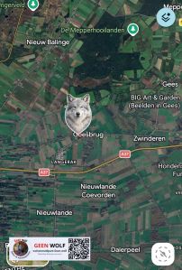Wolf gezien in weiland naast de ijsbaan aan de Coevorderstraatweg.