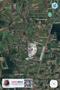 Wolf gezien aan de Boekweitveen, hij liep richting burgemeesterbuiskuilweg.