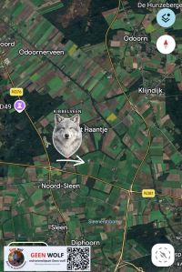 Wolf gezien stak de weg ’t Haantje over richting de Hullen. Hij bleef in de berm even stil staan