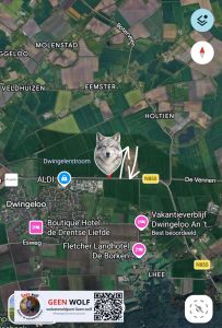 Wolf gezien, wilde de weg Lheedermade oversteken, maar door het verkeer keerde hij toch om en rende richting Holtien.