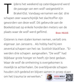 Tijdens de doortocht door Brakel-Elst zijn er 3 schapen het slachtoffer geworden van de wolf.
