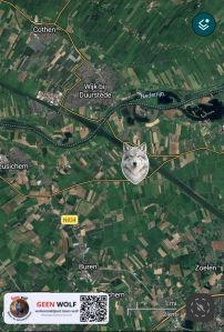 Vanmorgen een wolf zien oversteken van weiland naar weiland.