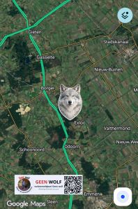 Wolf gezien tijdens hardlooprondje in boswachterij Exloo. Wolf verscheurt een ree (kalfje)?
