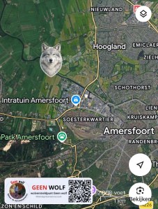 Wolf gezien in een weiland tussen de A.P.Hilhorstweg en de Eem in Hoogland. 1km verderop staan er schapen in de wei.