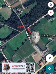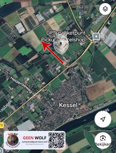 Wolf gezien op de Molenstraat in Kessel, hij had de Rijksweg overgestoken en liep in de richting van de Keizerstraat. Hij stak de Groenstraat over in sloeg toen linksaf de bossen in.
