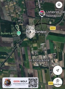 “Opgepast!!! Wij hebben zonet een wolf gespot in het bos naast/achter het voetbalveld! Geen idee of ie er nog is… We hebben helaas geen foto kunnen maken want we wilden snel weg. Het was 100% zeker weten een wolf!”