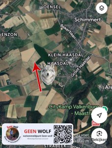 Wolf gezien door wandelaar met 2 geschrokken honden, hij ging door boomgaard van Groot Haasdal naar Klein Haasdal. Richting Slunderweg.