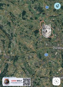 Huidige wolvenbeweging links Niederrhein/ Nabij Nederlandse grens met Venlo.