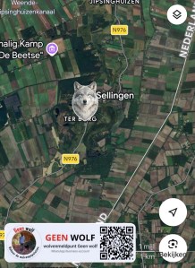 “Wolf gesignaleerd. Weg bij Ter Borg. Geen foto van. Liep weiland in richting Ter Borg schaapskooi.”
