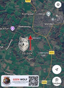 In Buurtschap Delden in Vorden is vandaag een wolf gezien.