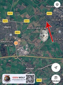 “Heb net een wolf gezien, ik reed op Doetinchemseweg richting de Huet. Net na Notenstraatje stak ie rechts vh land over links het land op richting treinspoor.”