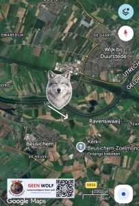 Wolf gezien, liep door de uiterwaarden. Ging richting Ravenswaaij.