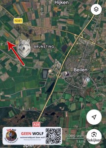 Wolf gezien op de Beilervaart in Beilen. Stak de weg over op ong. 30m afstand. Vanuit zuidoosten naar noordwesten.