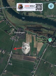 Wolf gezien op de Lange Meent in Everdingen, liep richting Graaf Huibertlaan. Eerder op de ochtend is een wolf gezien Breede Sticht/Autenasekade in Hagestein.